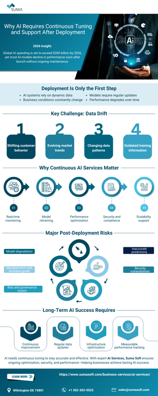 Most AI systems fail to deliver long-term value because they are treated as one-time implementations. In reality, AI models degrade as data, user behavior, and business goals change.
